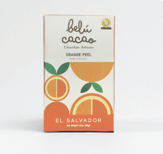 Cacao, cacao butter, brown cane sugar and orange peel. Minimally processed, Bean to bar. Single origin.